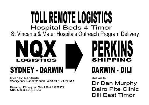 In 2009 The Mater Hospital made available 16 hospital beds via an upgrade. Transport was provided by NQX, Toll Remote Logistics and Toll marine.